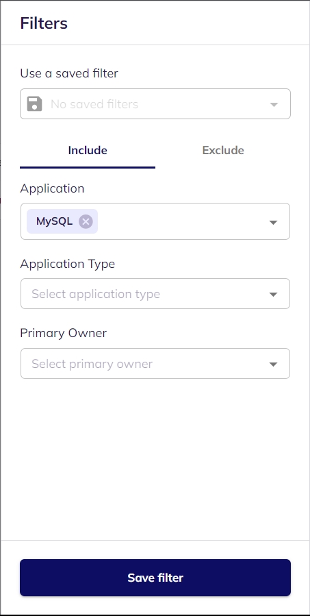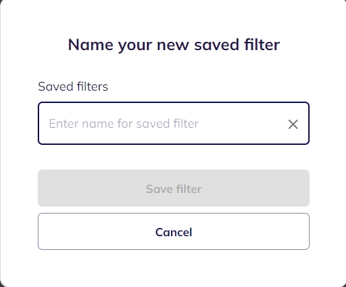 Enter the name of the filter or select from the drop-down box. Click on Save filter to save the changes.
