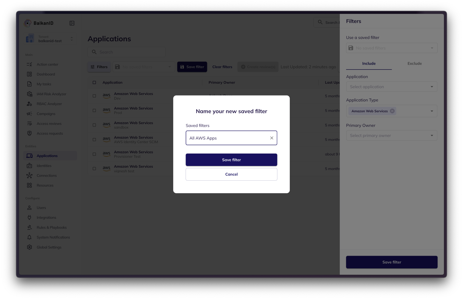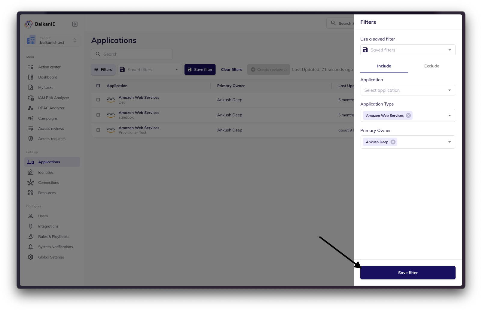 Name and click Save Filter to save the filter configuration.