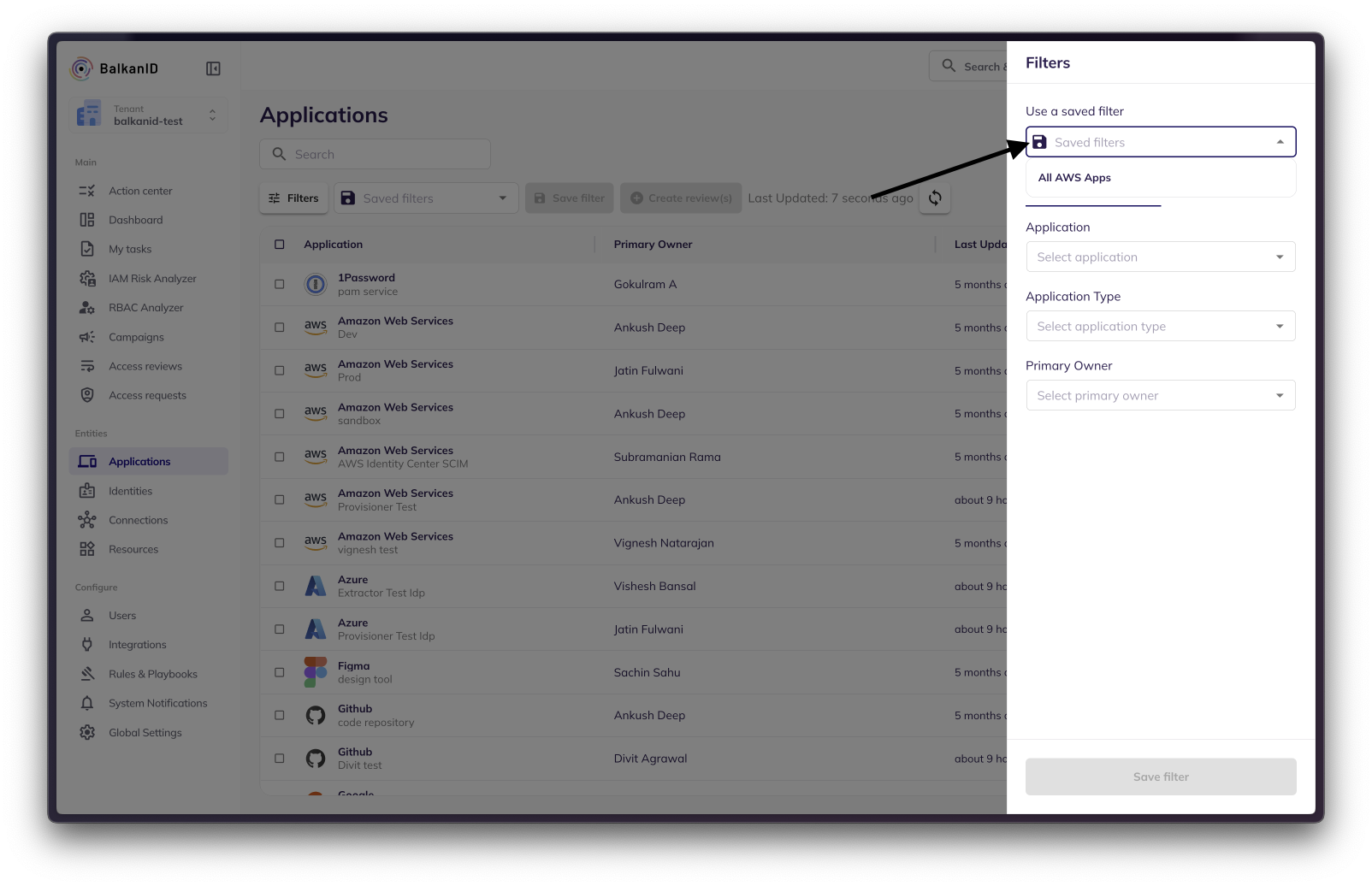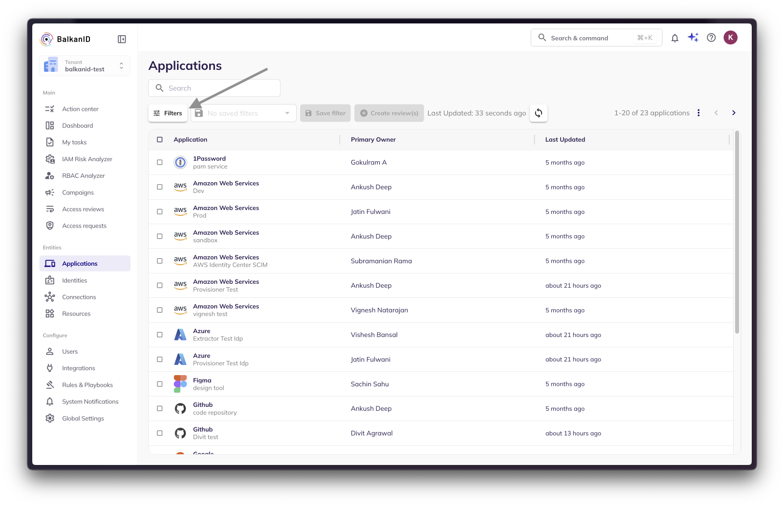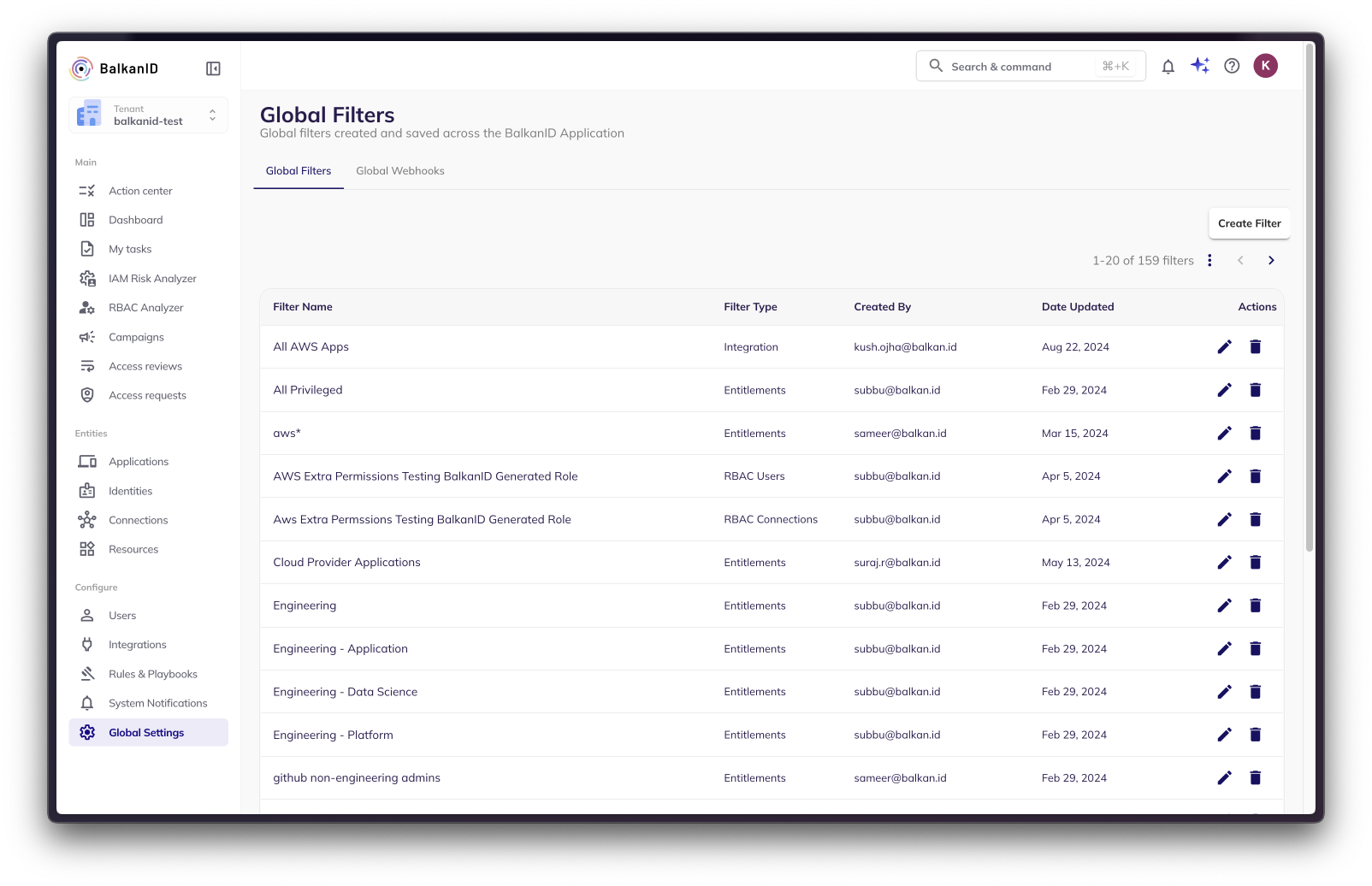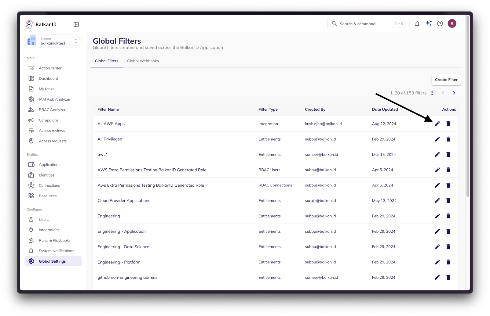 Open the Filters menu on any page in BalkanID.