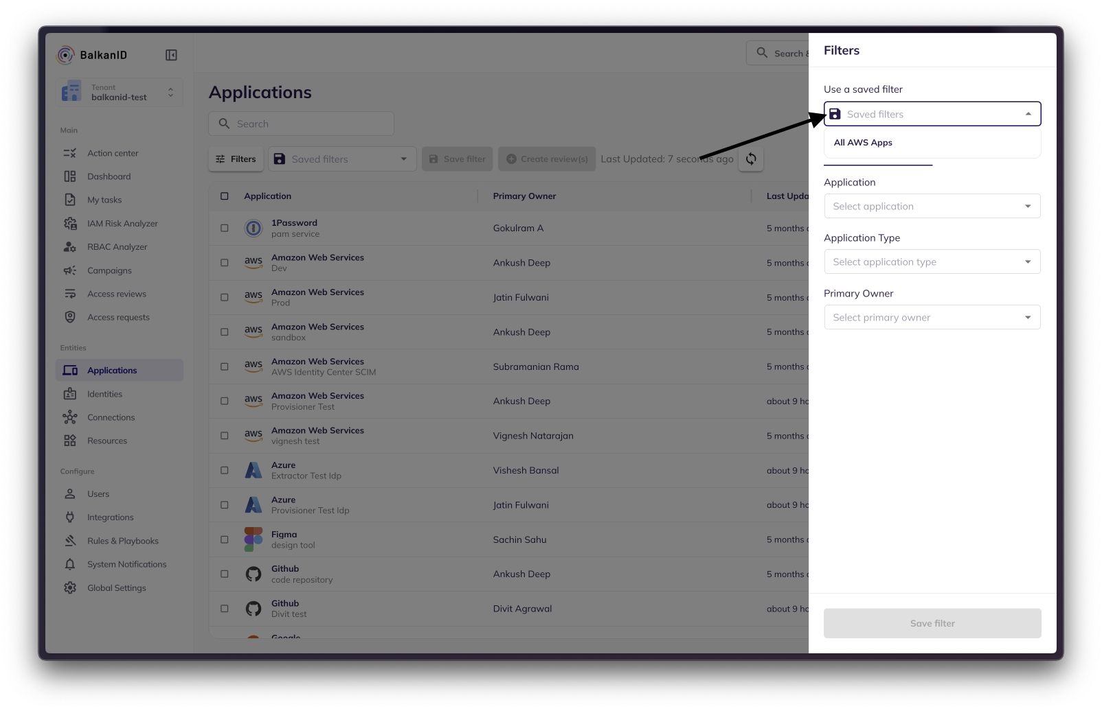 Once Saved Filter is applied, filtered results are immediately visible on the page.