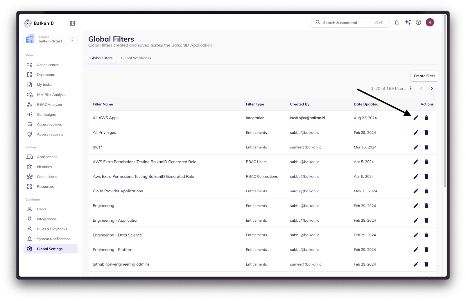 You can view the list of Saved Filters on your tenant by visiting the Saved Filters tab in your Global Settings page.