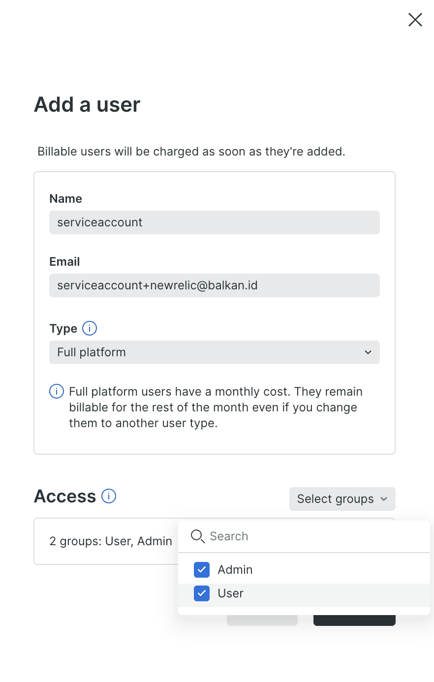 If you need to create a new user, make sure the user is a Full Platform User and added to Admin as shown in the screenshot below.