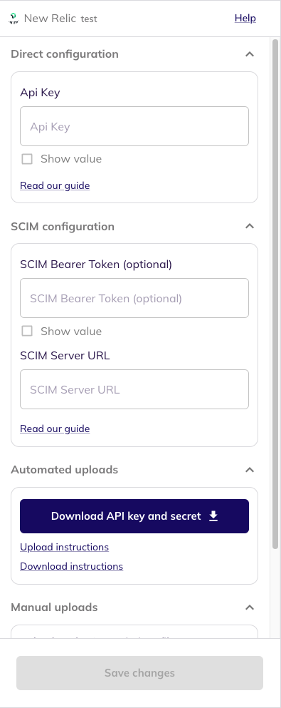 New Relic would have been added to the list of applications. Click on the Configure and Integrate button beside the integration name, and configure the fields with the values that were noted prior. It should look like this:
