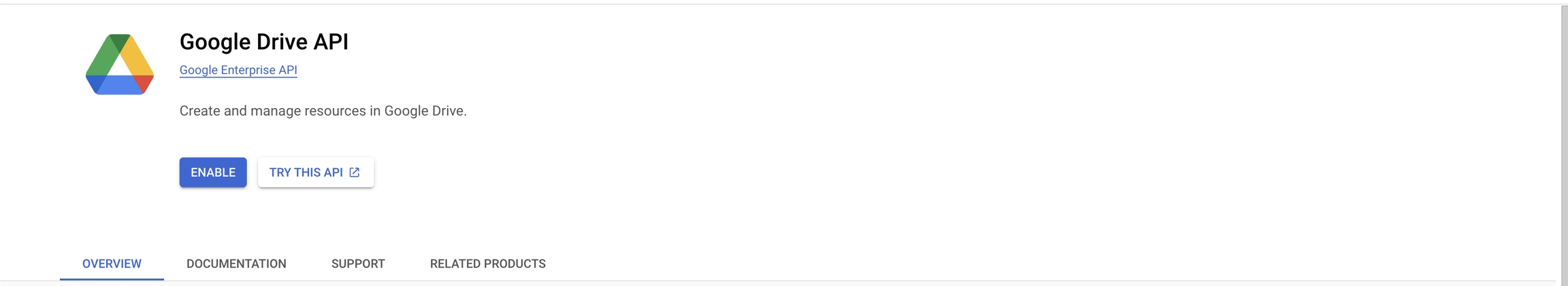 Enable the Google Drive API by going to