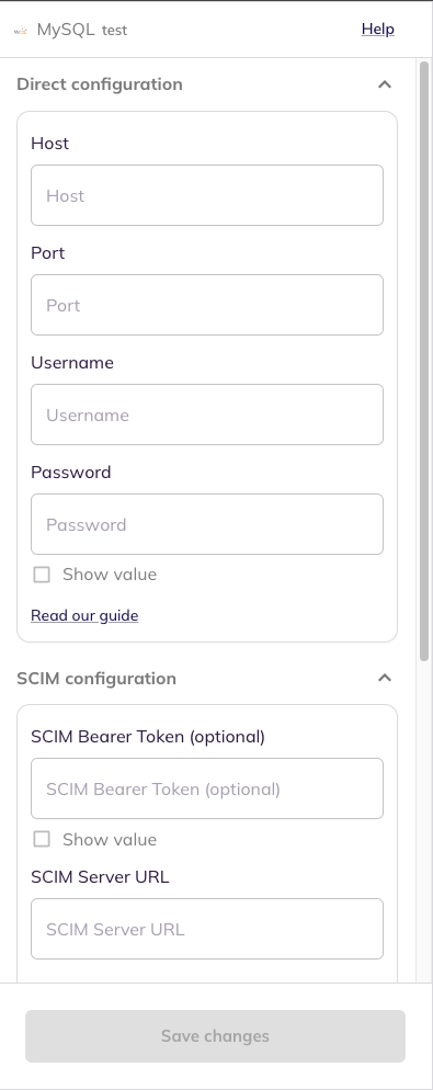 - `password`: Password to connect to the MySQL serverConfigure integration within your BalkanID tenant