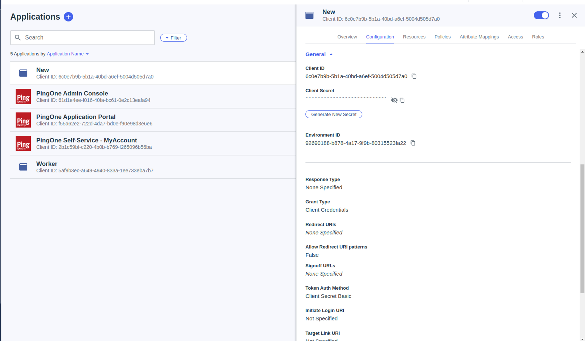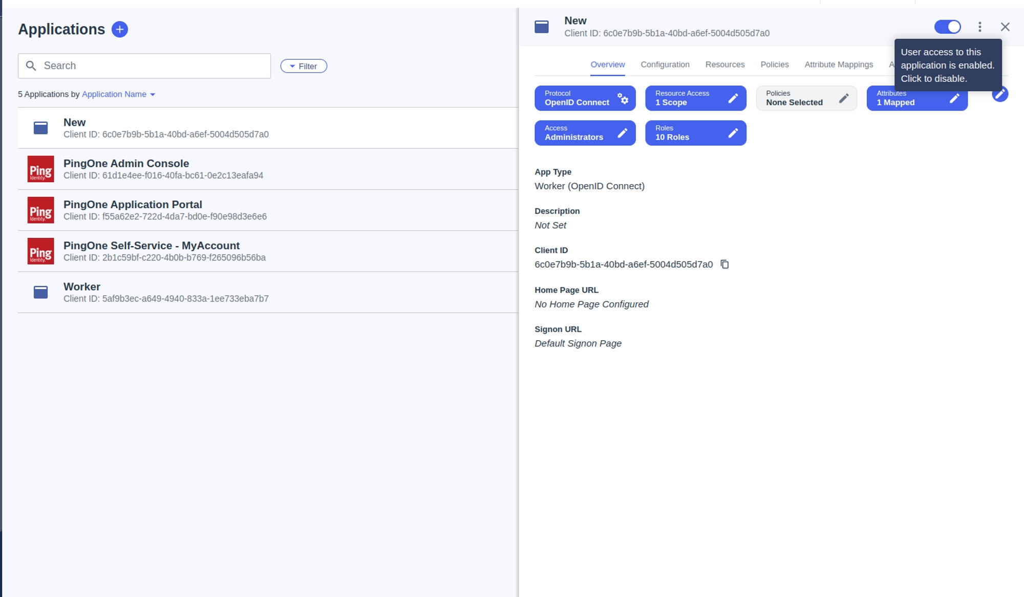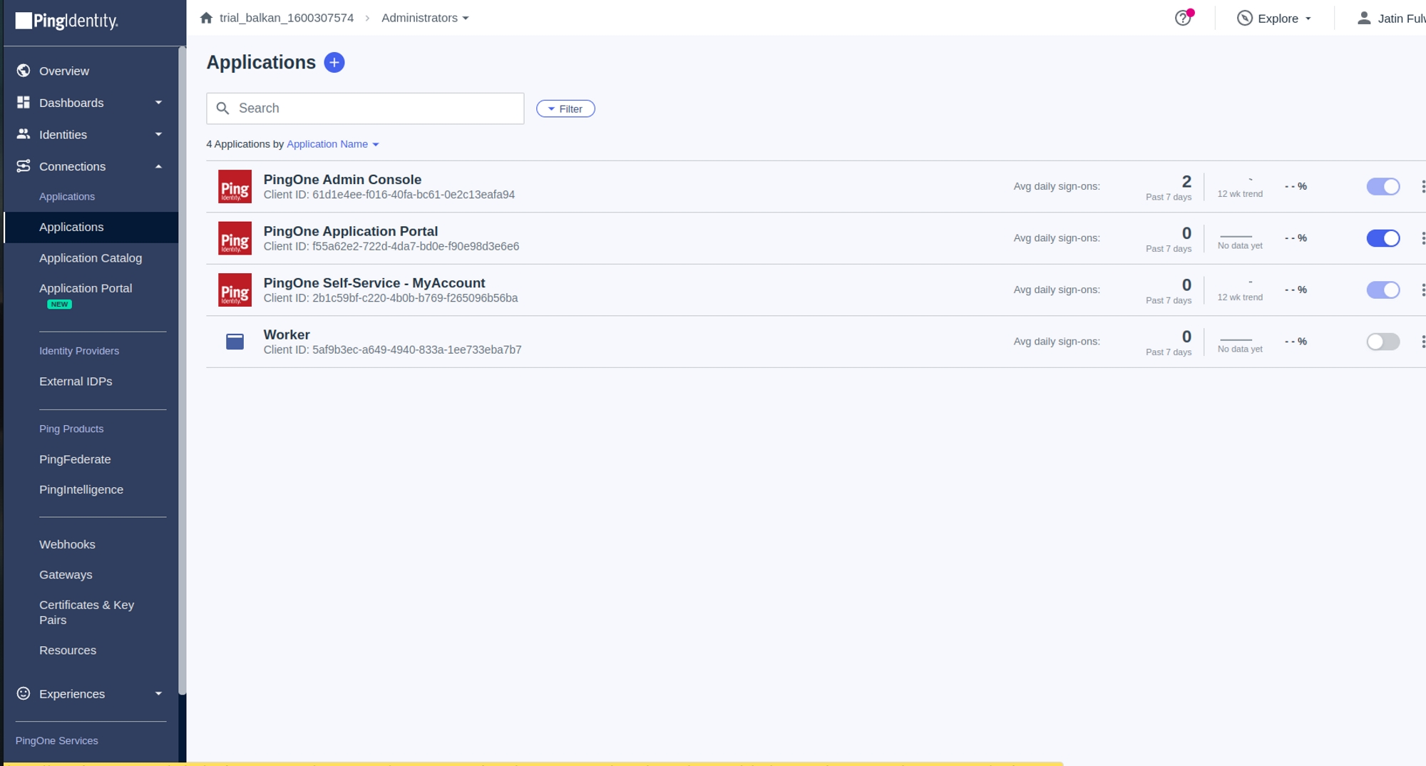 Use the PingOne admin console to create your first application connection. To create the application connection: