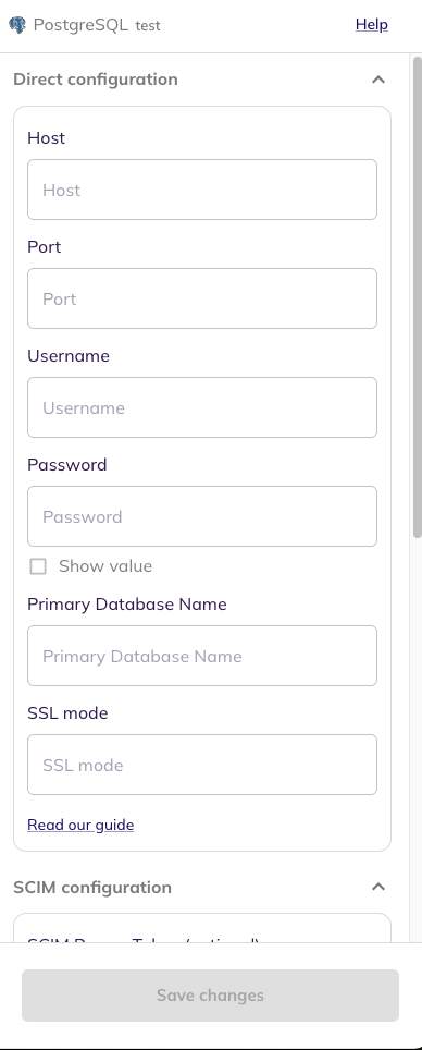Head to Integrations > Third Party Applications and click Add Integration, select PostgreSQL. Set up the Primary Application owner and the Description, if any.