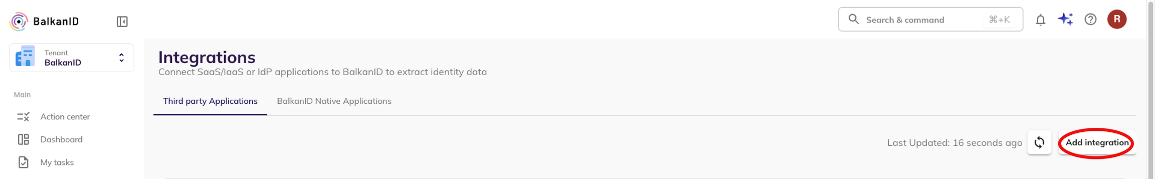 Login to the BalkanID application and switch to the tenant you would like to add your integration to.