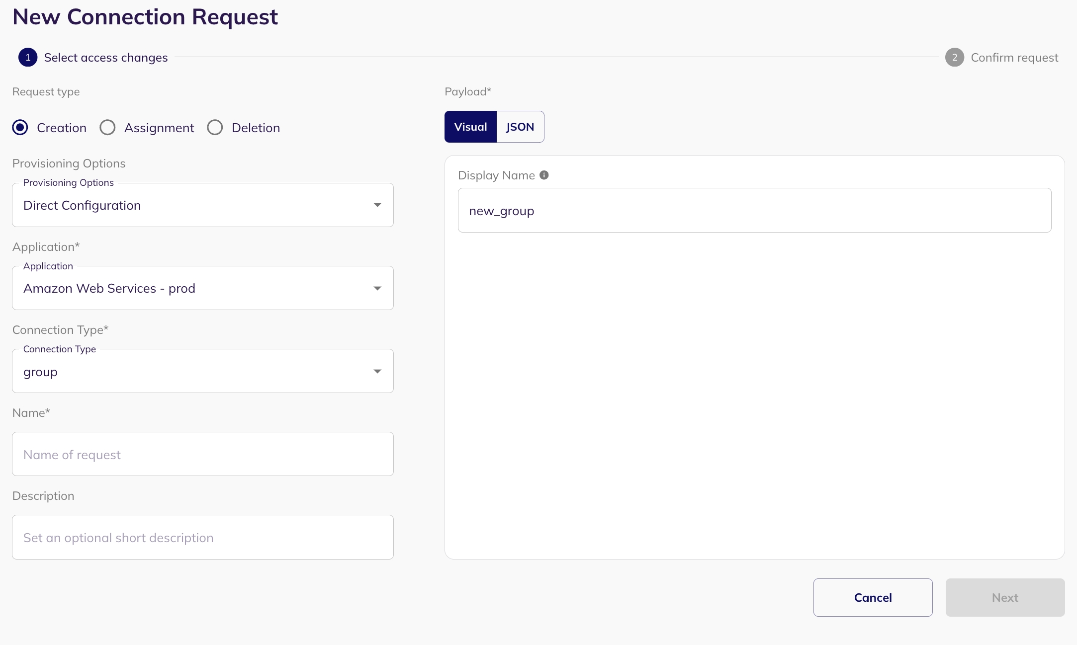 Creating a new connection is a straightforward process that allows you to add connections like groups, roles, or policies to your chosen applications efficiently.