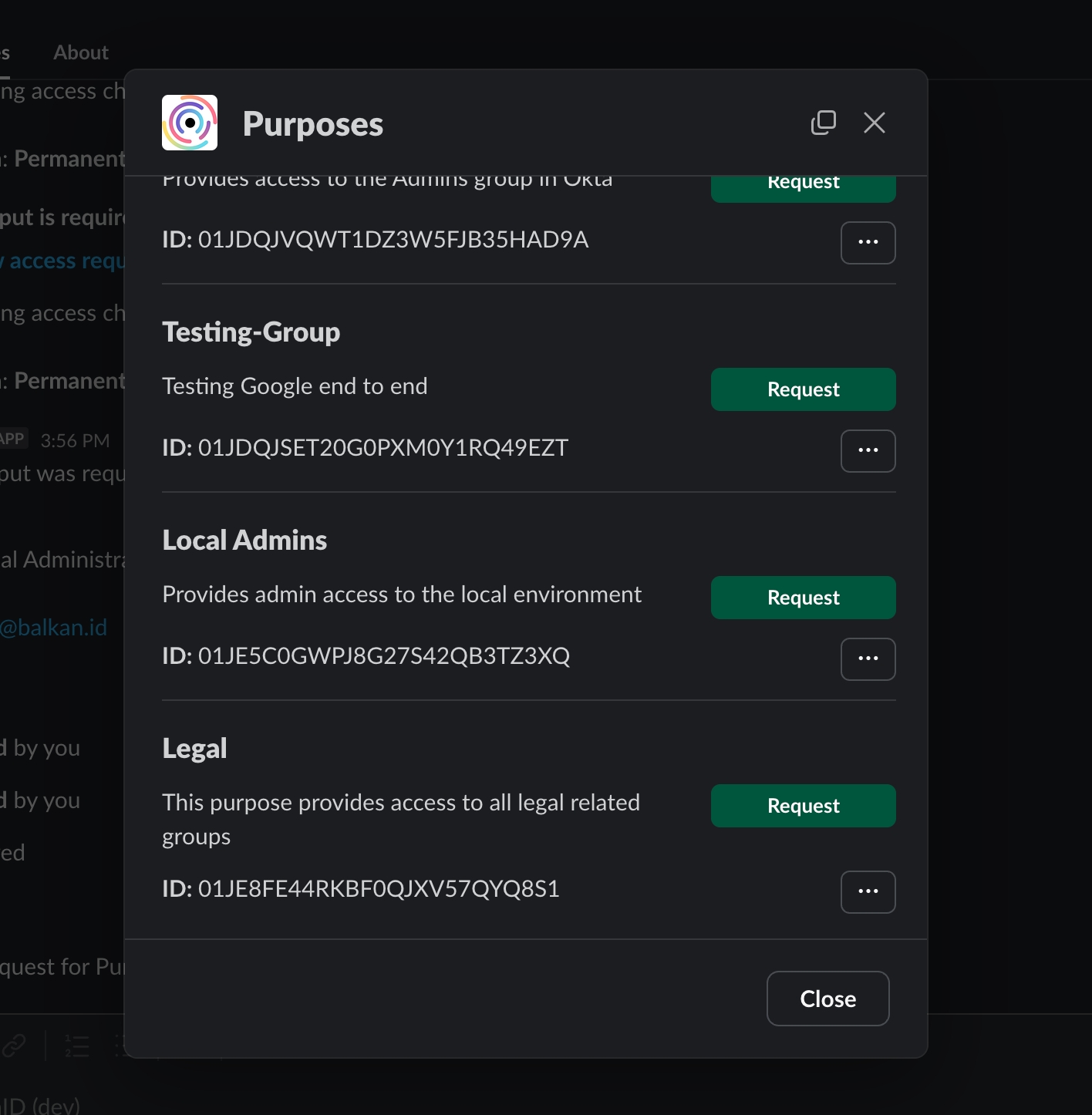 To request a purpose, click the "Request" button next to the relevant purpose.