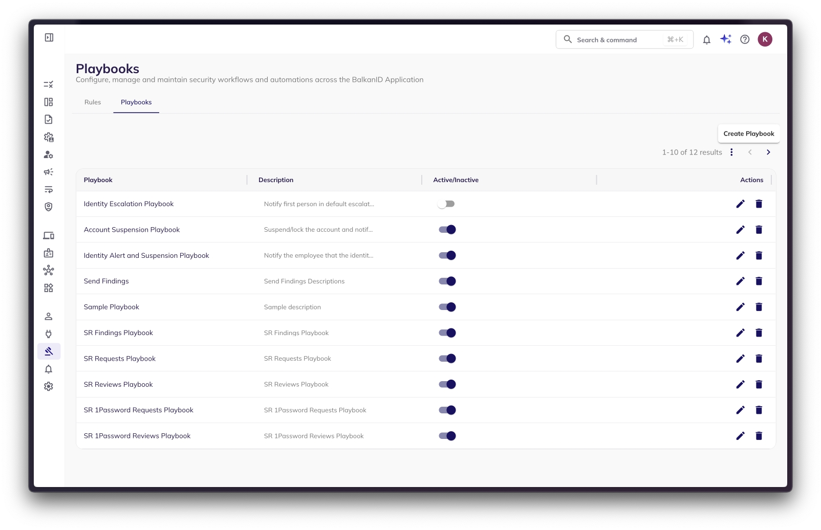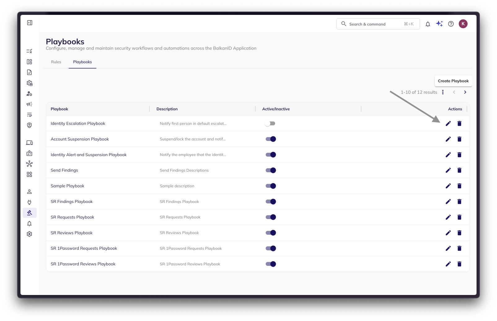 Go to Rule and Playbooks > Playbooks tab on your BalkanID tenant.