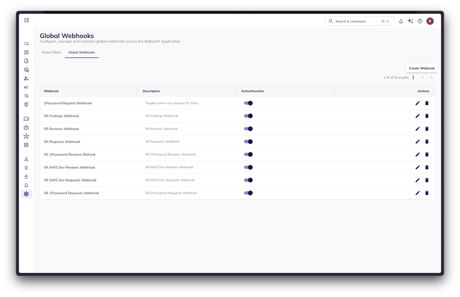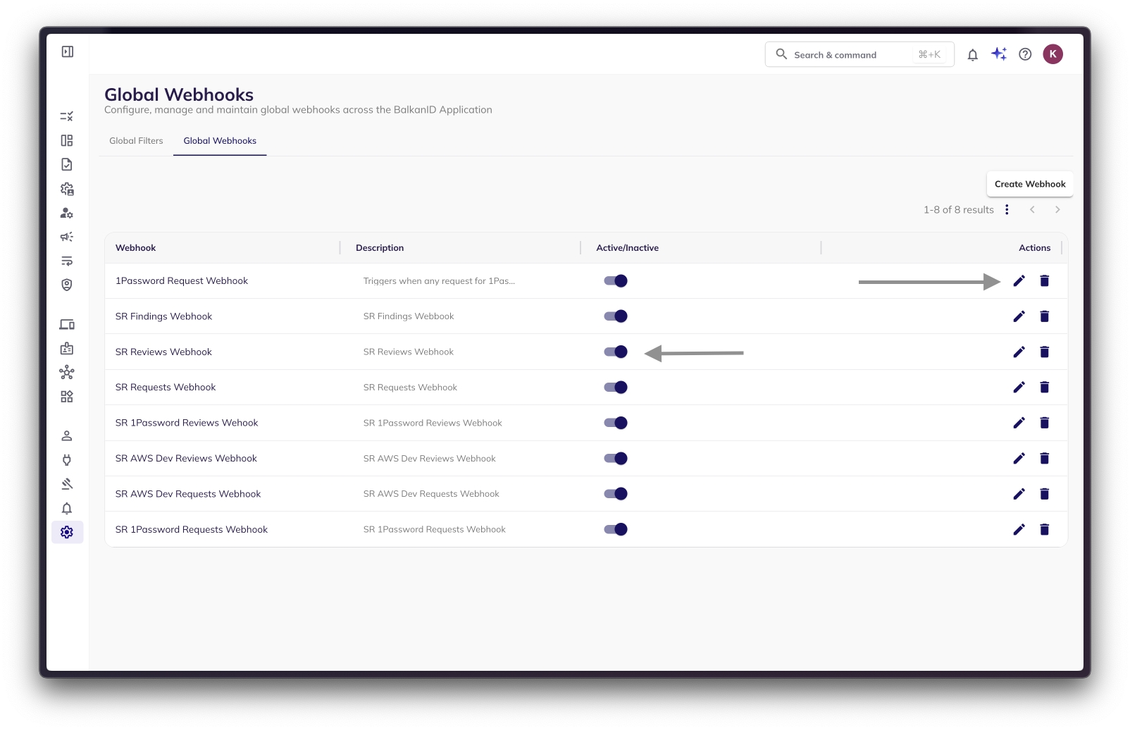 BalkanID offers a robust and seamless way to set-up, configure and send data to external webhooks. There are two kinds of webhooks that BalkanID supports, namely - global webhooks and integration specific webhooks. Configuring global webhooks is a fairly straightforward and easy process, designed to enhance system functionality and versatility on per application integration basis. By following a simple setup process, you can effortlessly set up, edit, and utilize global webhooks, ensuring smooth execution and efficient handling of webhook interactions.