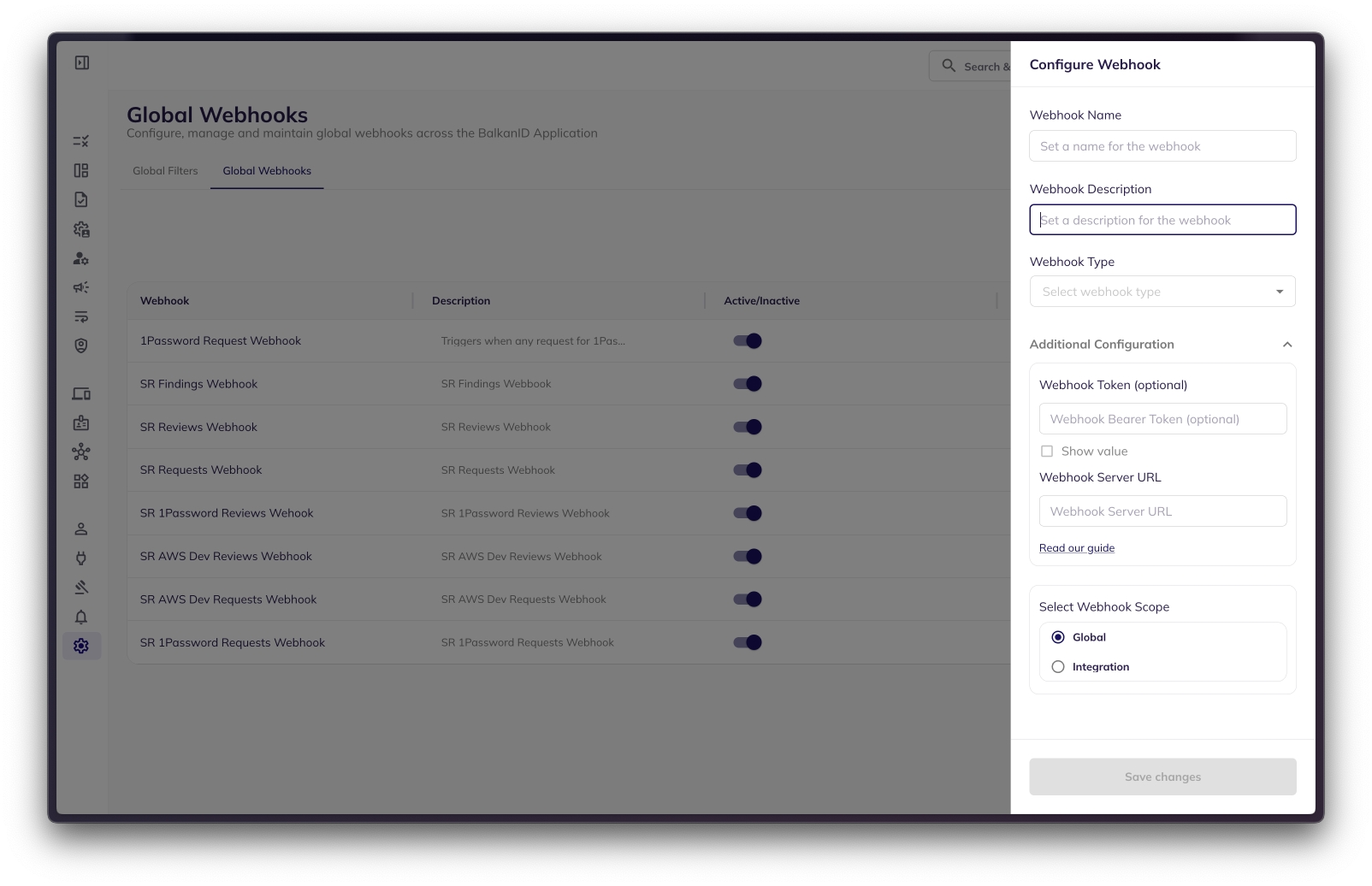 1. Go to Global Settings > Global Webhooks tab on your BalkanID tenant.