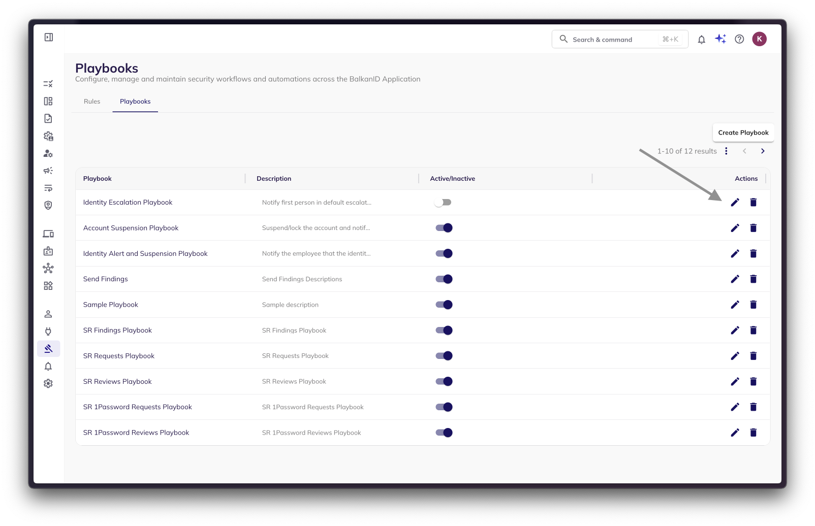 Go to Rule and Playbooks > Playbooks tab on your BalkanID tenant.