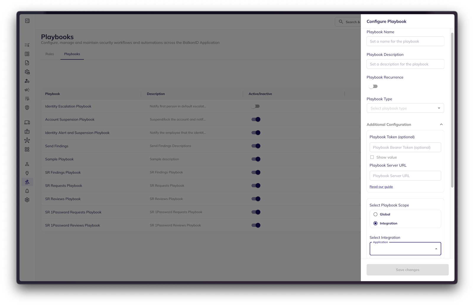 BalkanID offers a robust and seamless way to set-up, configure and send data to external playbook servers. There are two kinds of playbooks that can be enabled namely: global playbooks and integration specific playbooks. In this article, we will review configuring integration specific playbooks. Configuring integration specific playbooks is a fairly straightforward and easy process, designed to enhance system functionality and versatility on per application integration basis, while all data encrypted in transit. By following a simple setup process, you can effortlessly set up, edit, and utilize integration-specific playbook, ensuring smooth execution and efficient handling of auto-remediation of your playbook interactions on access reviews, access requests or findings in action center.
