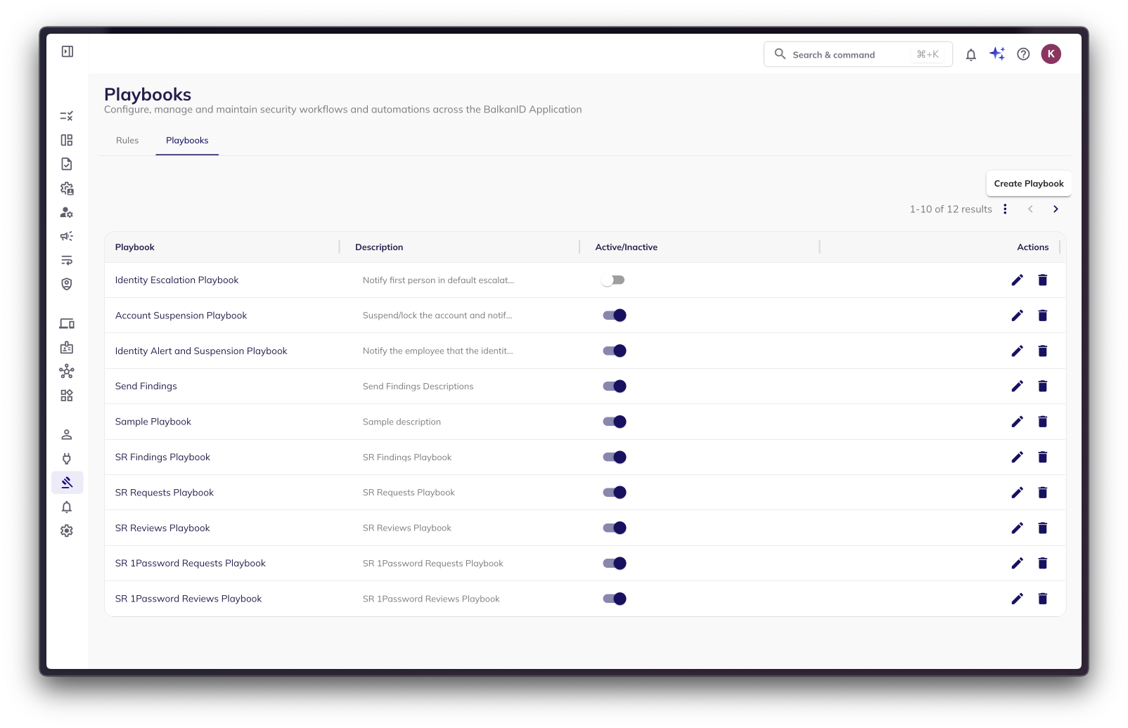 1. Go to Rules and Playbooks > Playbooks tab on your BalkanID tenant.