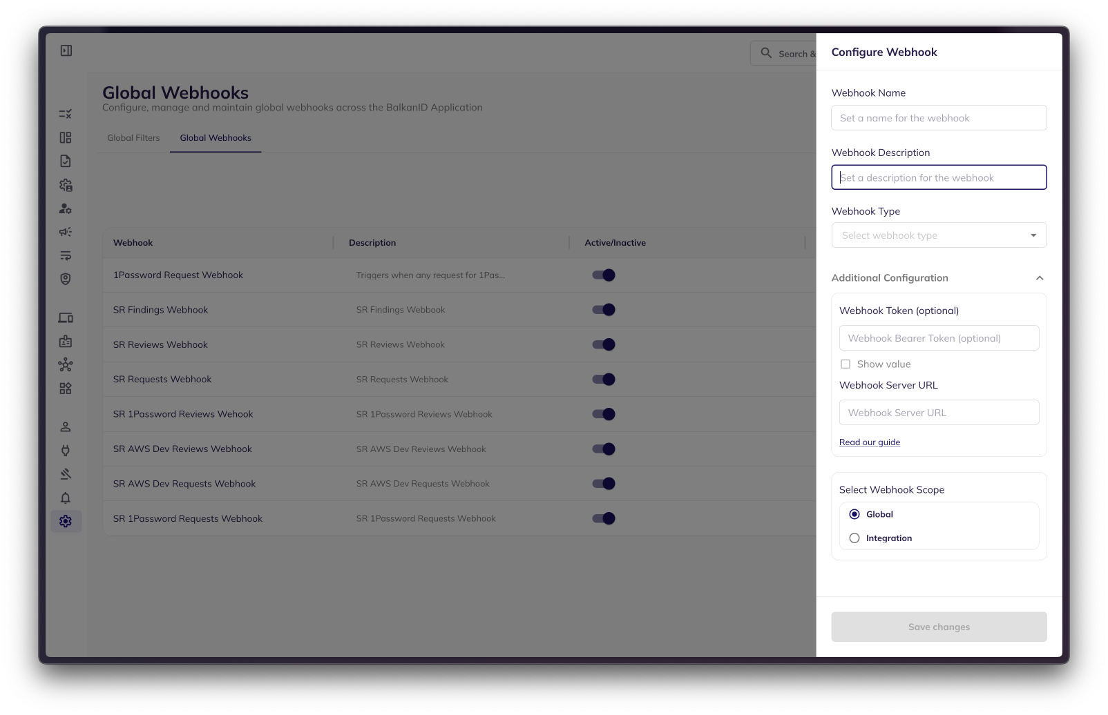 BalkanID offers a robust and seamless way to set-up, configure and send data to external webhooks. There are two kinds of webhooks that BalkanID supports, namely - global webhooks and integration specific webhooks. Configuring global webhooks is a fairly straightforward and easy process, designed to enhance system functionality and versatility on per application integration basis. By following a simple setup process, you can effortlessly set up, edit, and utilize global webhooks, ensuring smooth execution and efficient handling of webhook interactions.
