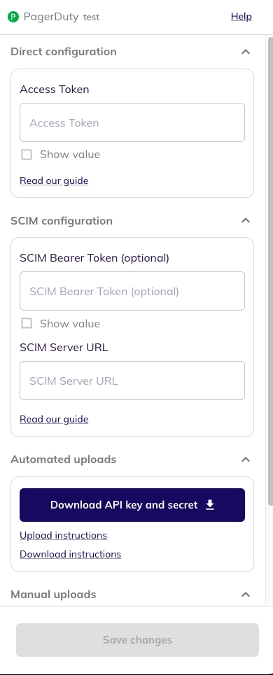 Pagerduty would have been added to the list of applications. Click on the Configure and Integrate button beside the integration name, and configure the fields with the values that were noted prior. It should look like this: